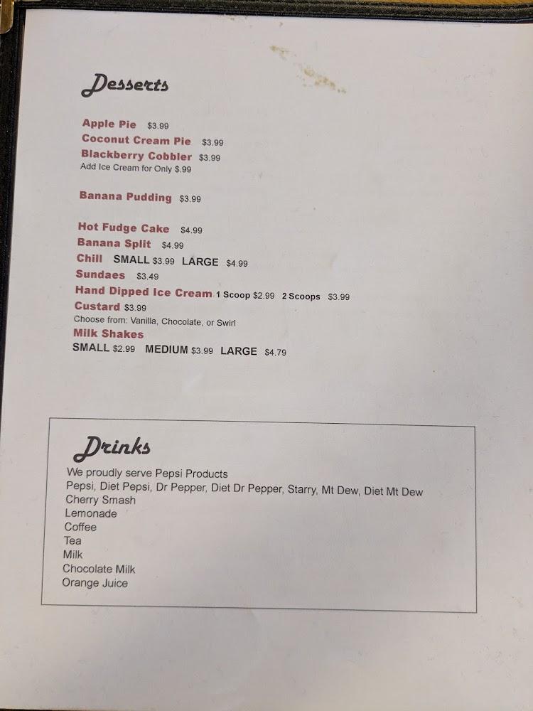 The diner takes pride in its regional specialties. Known for generous portions, the dining experience feels generous and fulfilling. Seasonal items appear on special occasions. Two standout desserts include coconut cream pie and hot fudge cake, popular among patrons. Check out their drink selection too, including coffee and refreshing sodas.